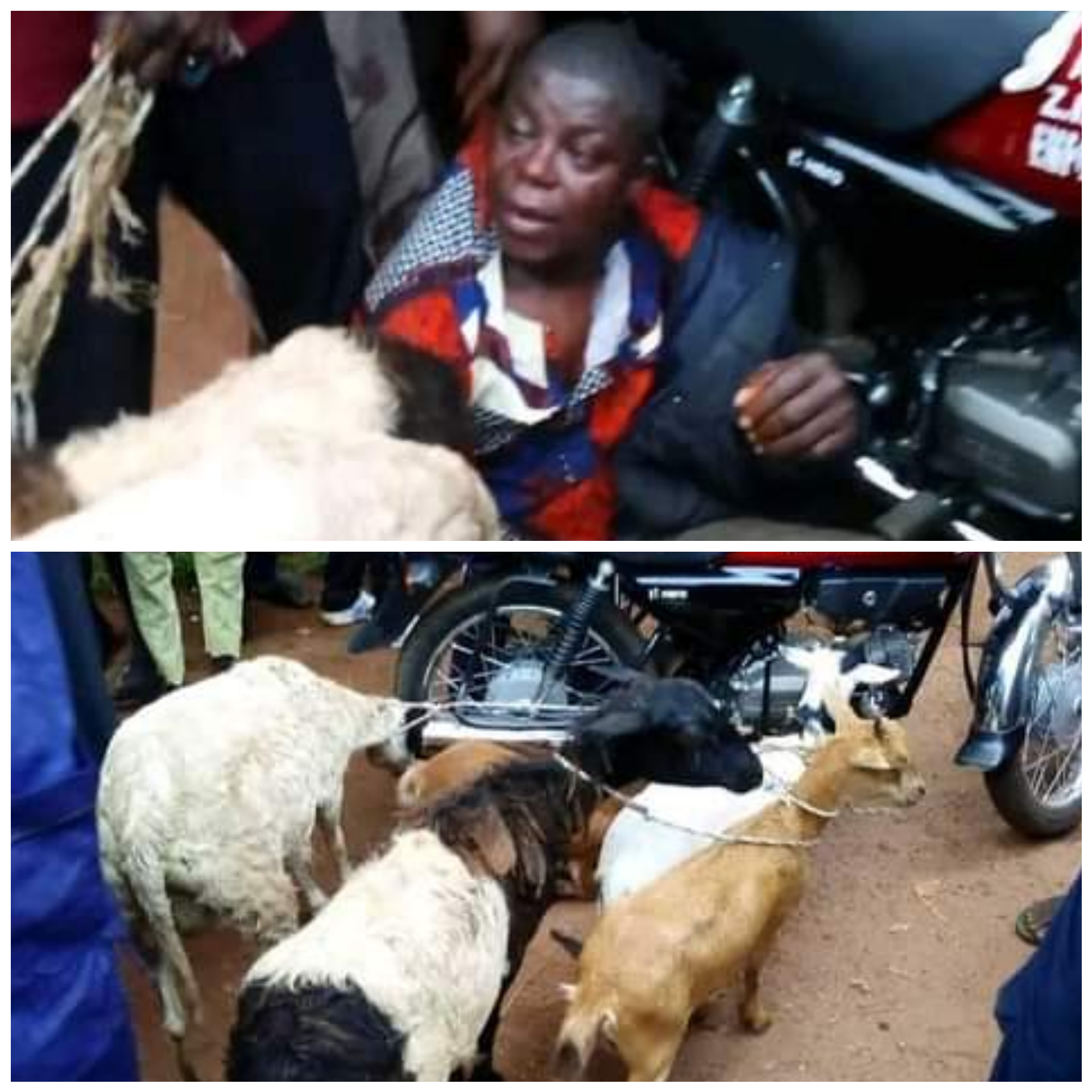 According to a witness, the suspect was nabbed on Tuesday morning, July 18, 2023, while transporting the stolen animals in a motorcycle.