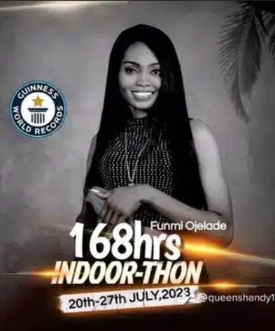 A Nigerian lady, Funmi Ojelade, who embarked on a 168 hours indoor-a-thon to break the Guinness World Record is begging Nigerians to help her with data to remain online to complete the feat.