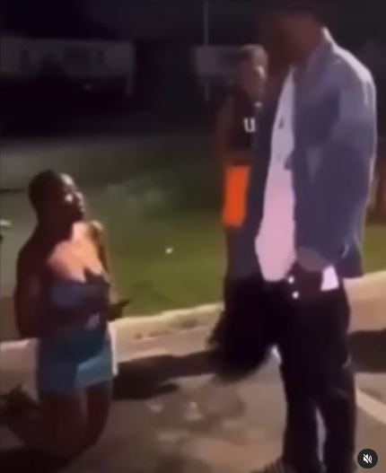 The lady could be seen kneeling on the floor while begging the boyfriend as friends also joined her to beg him for forgiveness.