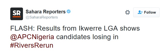 Some unconfirmed poll results from Phalga and Obio-Akpor wards in the Rivers State rerun election has been obtained.