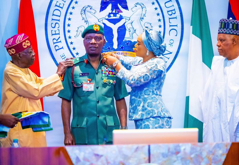 Others being decorated are Maj Gen Taoreed Lagbaja Chief of Army Staff; Rear Admiral Emmanuel Ogalla, Chief of Naval Staff; and Air Vice Marshall Hassan Abubakar, Chief of Air Staff.