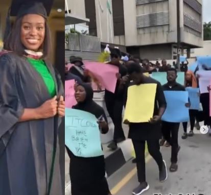 In a video shared online, House officers could be seen marching outside the hospital building with placards that carry messages such as, “It could have been me and “The system is rigged against young doctors,” while they chanted: “All we are saying, give us justice.”