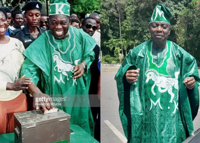 He wore an agbada designed like the one Abiola wore to the polling booth on June 12, 1993.