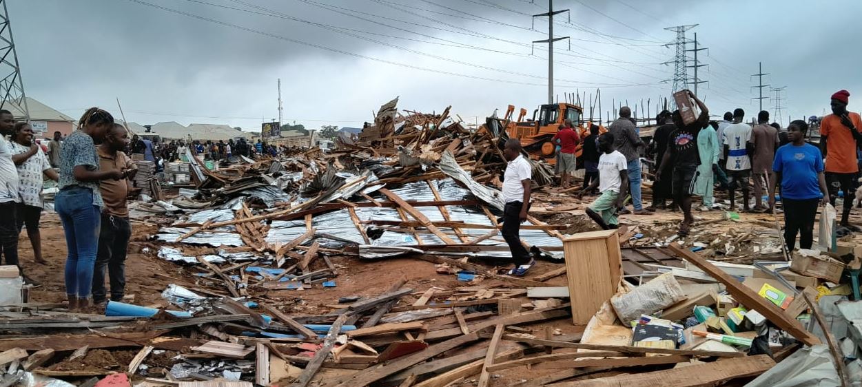 According to Daily Trust, when newsmen visited the location, stall owners were frantically trying to save their wares from the revving engine of bulldozers brought to destroy the stalls.