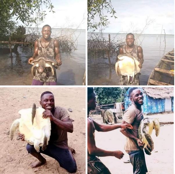 A sea turtle was caught by a fisherman popularly known as Benknows in Oyorokoto community in Andoni Local Government Area of Rivers State.