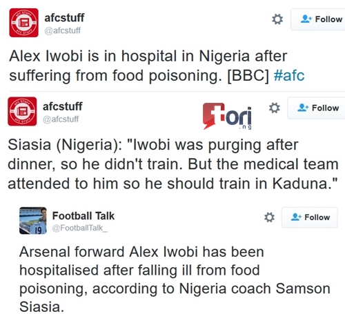 Shocking news making rounds on social media states that young Super Eagles player, Alex Iwobi, has reportedly been treated for food poisoning after he complained to senior officials in the Super Eagles camp.