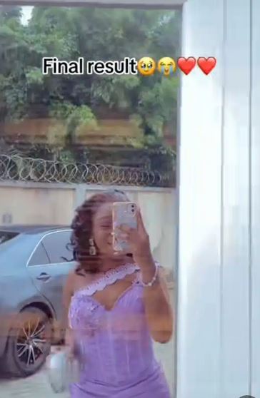 The young girl revealed that she bought and installed her hair for 68K, nails 10k, got her elegant dress for 42K, bags and heels 30K, makeup 15k, and finally, jewelries for 18K.