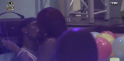 BBNaija All Stars housemate, Tolanibaj was spotted kissing her bestie, Neo during the Thursday night pool party.