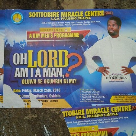 Themed "Oh, Lord Am I A Man?", the banner shows that the crusade will hold on Easter Friday in Ondo.