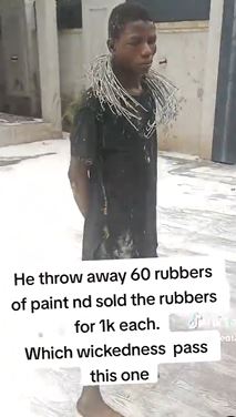 A young man has been apprehended for reportedly throwing away paints valued at N1.5 million in order to steal the buckets and sell them for N1000 each.