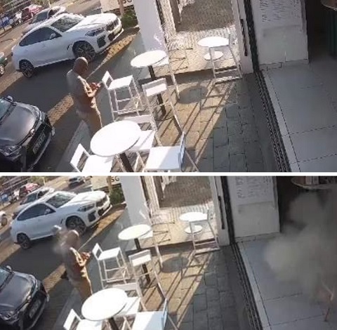 In closed-circuit television footage (CCTV) circulated on social media platforms, two gunmen, one wearing a white hat, approached the businessman while he went through his cellphone.