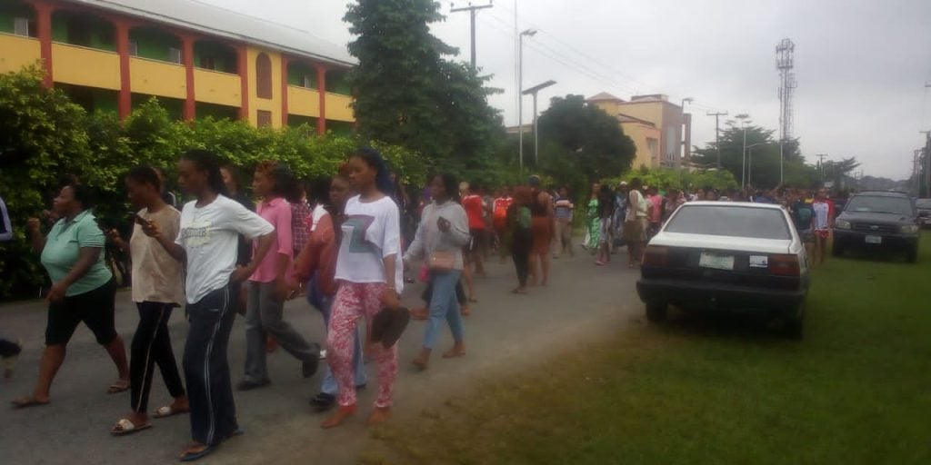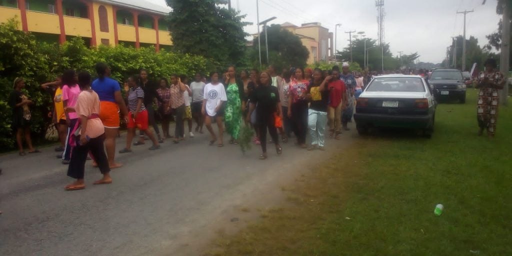 The female students on campus embarked on a protest on Thursday morning, claiming the incident has been recurrent without actions taken to prevent it.