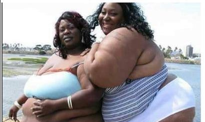 "I guess if you've got it, flaunt it...as these obese women seem to be telling us as they flaunt their massive and hot bodies. The lady on the right is all smiles as she is proud of her excess endowments".
