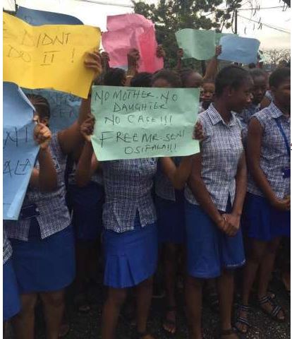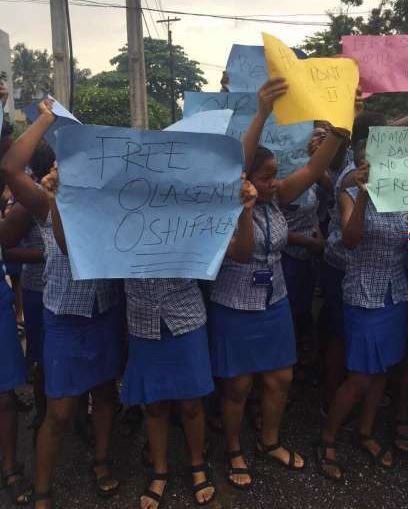Senior Secondary School 3 (SSS3) students of the school, on Monday, March 21, bore placards that read: “No Mother, No child, No Case!”, “Haters at work, free Mr Seni”, “No Seni, no A’s”, “He didn’t do it,” “It is a set up”, as they chanted “No Seni, no biology.”
