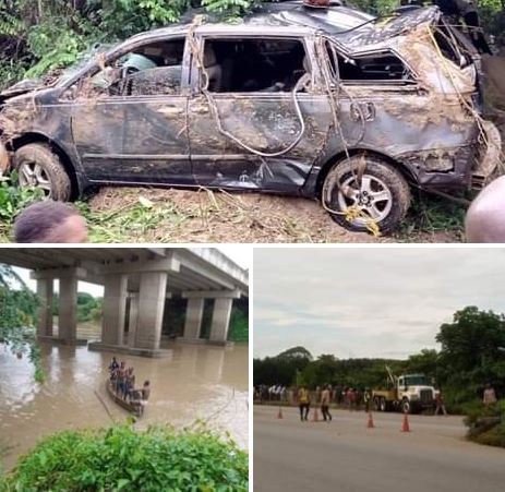 A Toyota Sienna car plunged into Omo river along the Sagamu-Benin expressway on Saturday, August 2, 2023, leaving three victims dead.