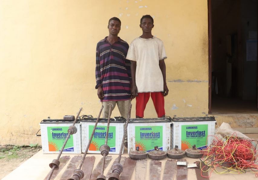 Two suspects, Shafiu Mohamed 22, and Yusuf Abubakar 19, who stole inverter batteries, ceiling fans, and other items from a school in Kontagora area of Niger state have been arrested by the police.