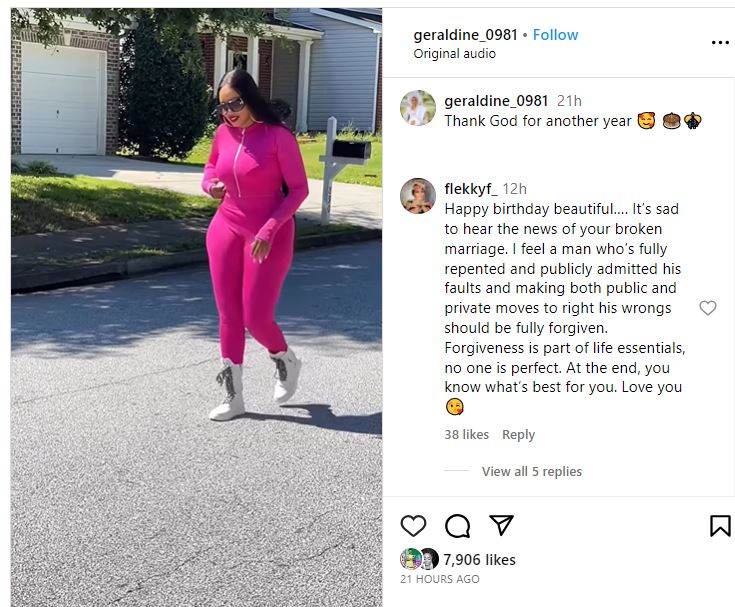 In another post where she showed off her steppings beautifully while rocking a pink two-piece outfit, she added, “Thank God for another year 🥰 🎂🎊.”