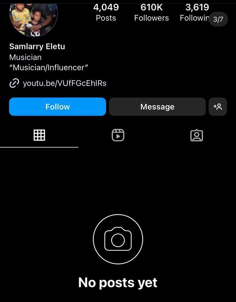 Lagos socialite, Sam Larry has restricted his account.