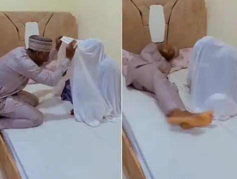 Social media users opined that he was happy to see his bride as she was above his expectations of beauty and ‘spec’.