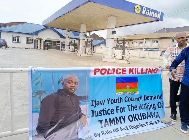 Following the murder, members of the Ijaw Youths Council (IYC) Worldwide, shut down a Rainoil Filling Station in Ebrumede community, Uvwie Local Government Area of Delta State.