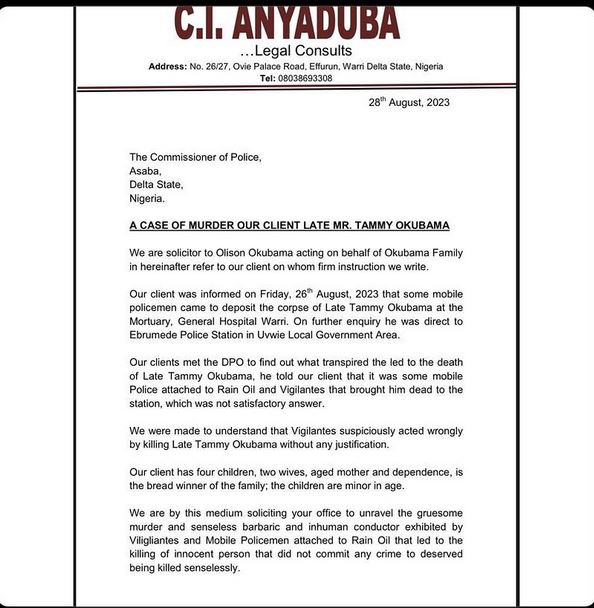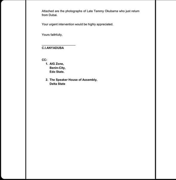 In a petition through C.I. Anyaduba Consults, the family called on the Delta State Commissioner of Police to unravel the truth behind Tammy's murder.