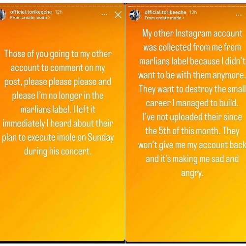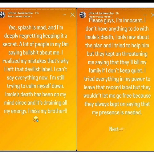 Naira Marley's female artist, Tori Keeche has made some shocking revelations following the death of singer, Mohbad.