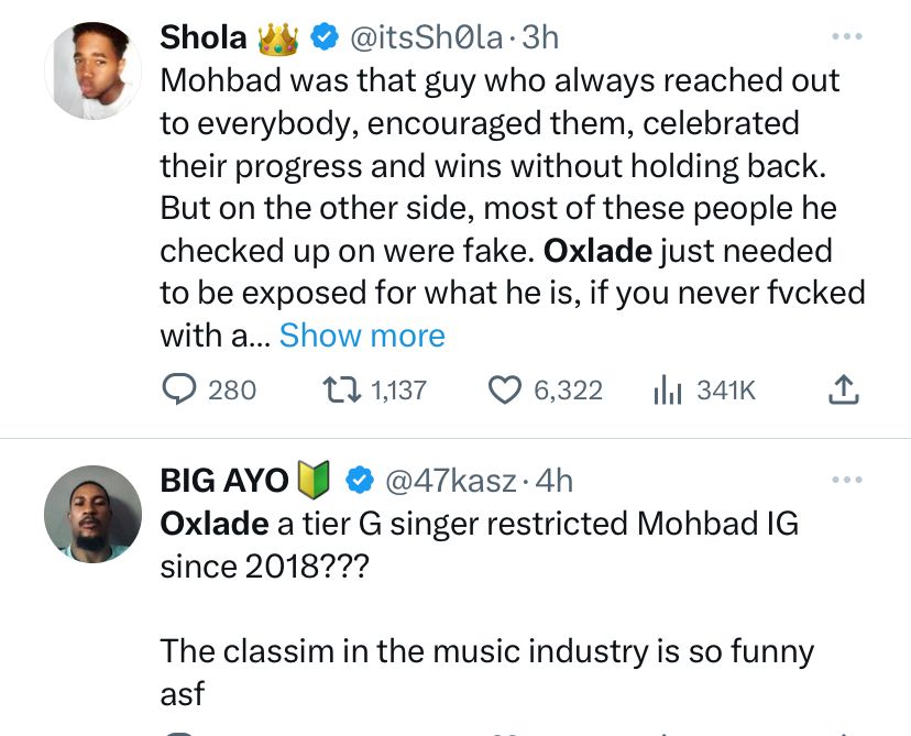 Nigerian singer, Oxlade has been lambasted by social media users after he shared a tribute for late singer, Mohbad.