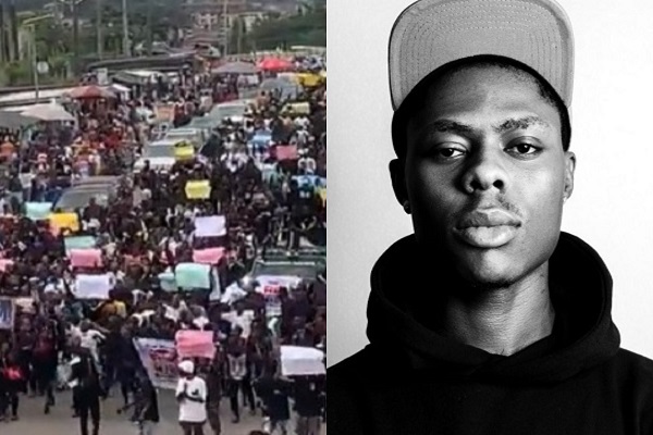 The #JusticeforMohbad protest kicked off on Tuesday with protesters hitting major streets of Abeokuta, the Ogun state capital.