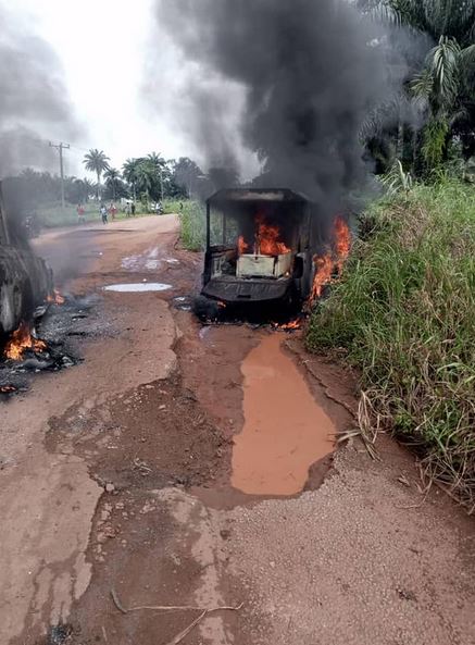 “When I got there, the two Hilux vehicles were on fire with the officers burnt beyond recognition. As I speak, Oriagu and Isinweke are blocked at the moment.