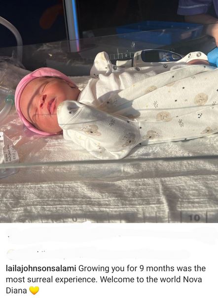 Laila announced the news on Instagram alongside a photo of her newborn daughter. The girl has been named Nova Diana.