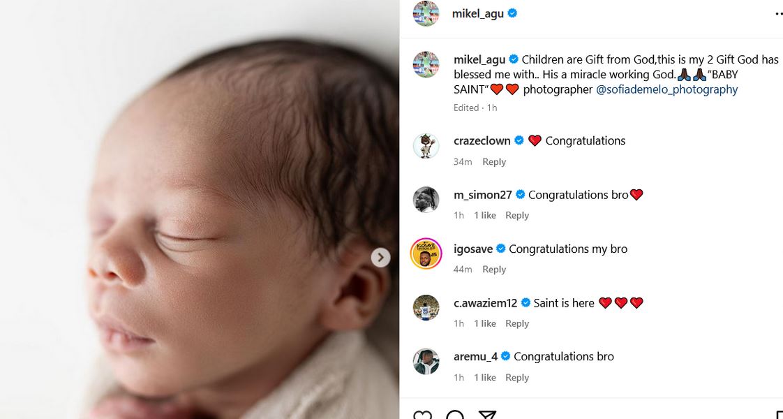 Sharing adorable photos of the new bundle of joy, Mikel Agu wrote: