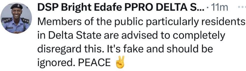 DSP Bright Edafe, the spokesperson of the Delta state police command, has debunked some viral reports about the force,