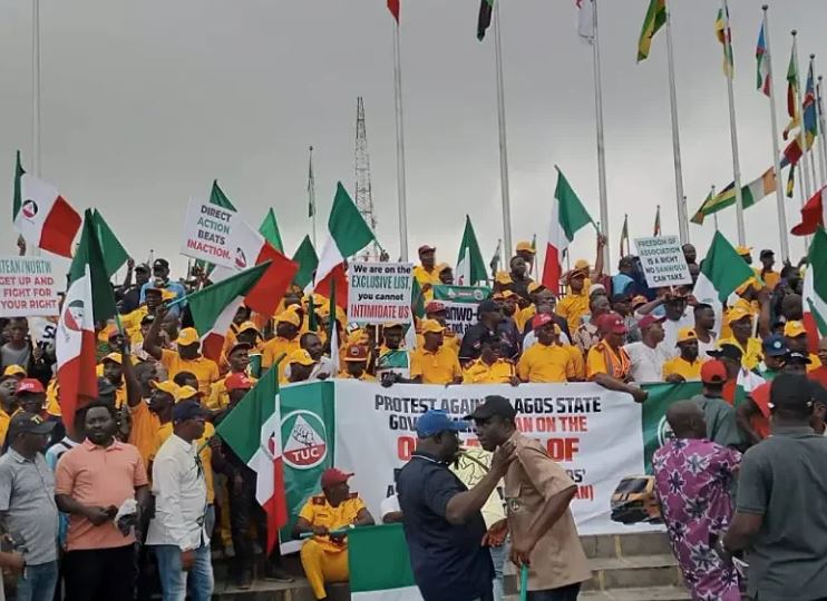 There is an ongoing protest by the Trade Union Congress (TUC) and the Road Transport Employers Association of Nigeria (RTEAN) in Lagos State.