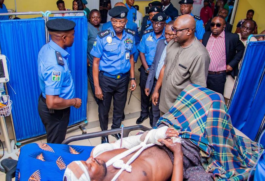 The Inspector-General of Police (IGP), Olukayode Egbetokun, paid a visit to the Police Inspector, Omeje Matthew, on Thursday, who was brutally attacked and macheted by armed hoodlums at his residence in Kabusa, Abuja.