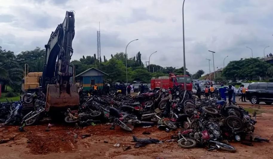 Over 470 motorcycles have been crushed by the Joint Task Force of the Federal Capital Territory Administration (FCTA) on Thursday, after they were impounded for operating illegally in the capital city, Abuja.