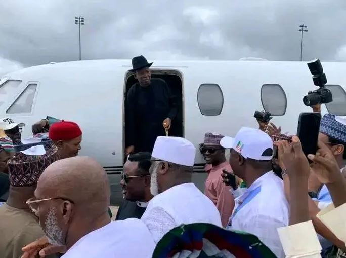 Abdullahi Umar Ganduje, the National Chairman of the All Progressives Congress, APC, has arrived Bayelsa for the inauguration of the party’s campaign council, ahead of the Nov 11 gubernatorial polls.
