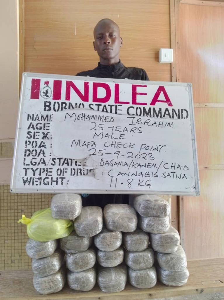 Babafemi said a Chadian, Mohammed Ibrahim, 25, was also nabbed at Mafa checkpoint, Borno, with 11.8kgs of the same substance on Monday, September 25.