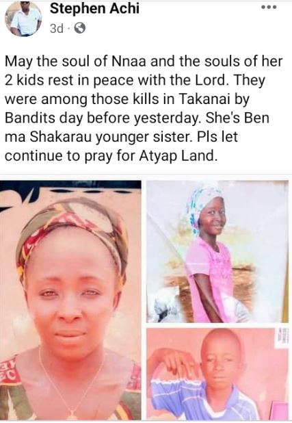In what will come across as a really heartbreaking development, a Nigerian woman identified as Nnaa and her two children were among six persons killed by bandits in Takanai community, Gora Ward, in Zangon Kataf Local Government Area of Kaduna State.