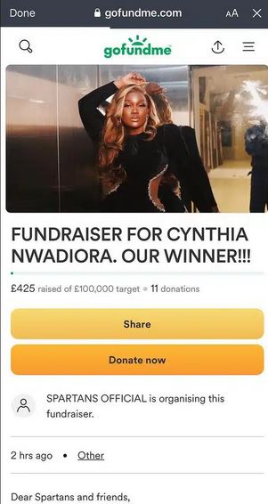 Fans of the star, on the other hand, have set up a GoFundMe account to raise about N100 million for her, as they described her as their winner.