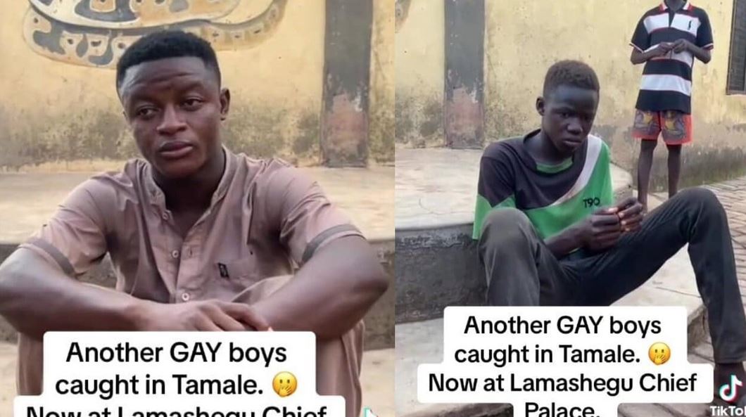 Two suspected g*y men have been paraded around a Ghanaian community after being caught allegedly trying to engage in s3xual intercourse.