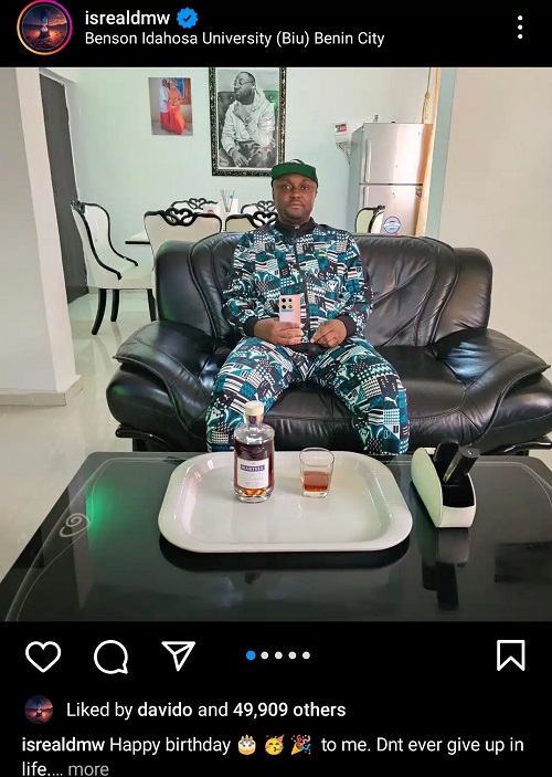 opa_pizzle101: “HBD @isrealdmw but why Davido FRAME big pass you and your wife frame and other frames wey I see inside those pictures you post. anyways I no blame you, even Jesus frame dey big pass person frame for some people house @davido boss you need to Orientate this guy atleast he is a year older Older. You don dey resemble the juju wey dem call you.”