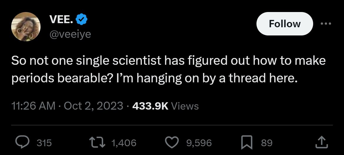 She tweeted: “So not one single scientist has figured out how to make periods bearable? I’m hanging on a bare thread.”