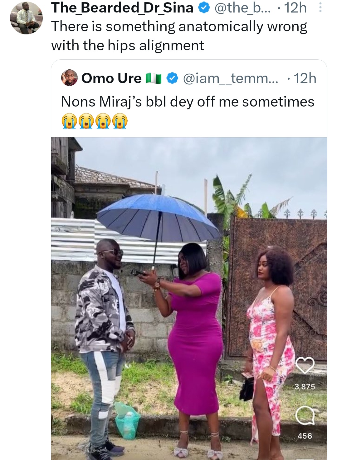 Blessing's video led viewers to begin mentioning Nons Miraj's body work.