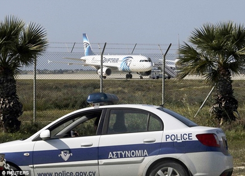 An Egyptian passenger plane carrying British and U.S. citizens has made an emergency landing on Cyprus after being hijacked by a man wearing a suicide vest.