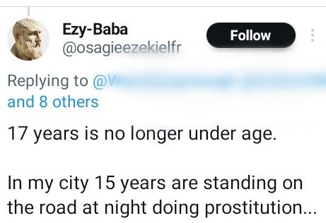 A Nigerian man, Osagie Ezekiel, has opined that someone who is 17 years old is no longer a minor.