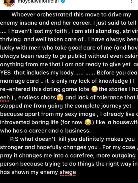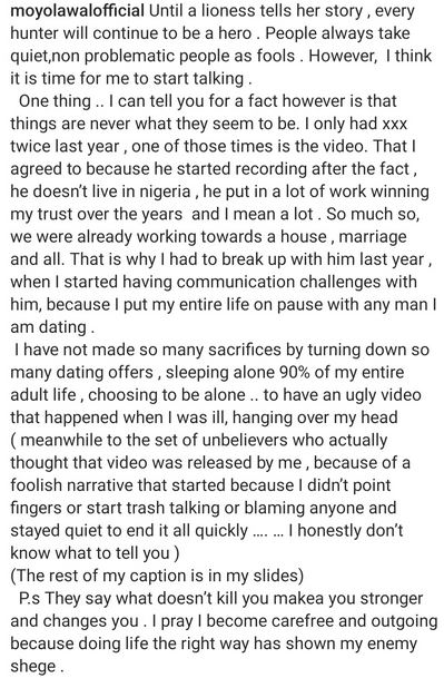 Popular Nigerian actress and business owner, Moyo Lawal has addressed her viral intimate video which was leaked on the internet.