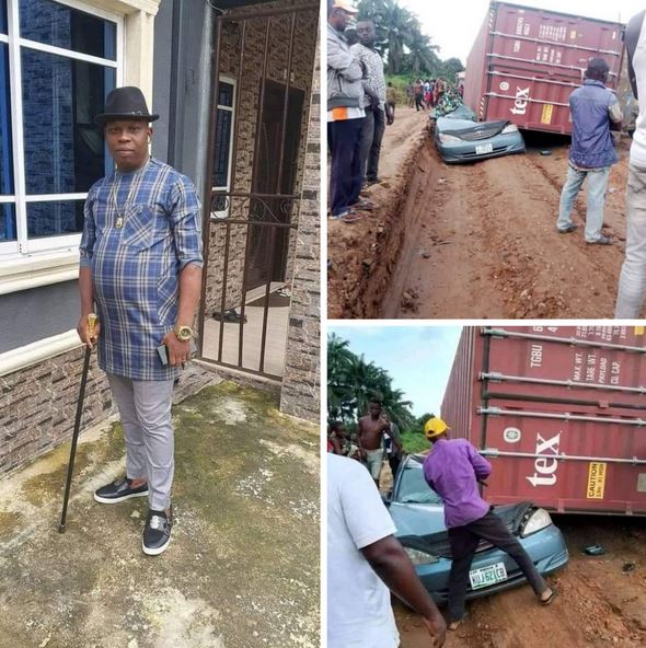 A businessman, Akuma Kalu, has been confirmed dead after a 40ft container fell on his car in Etche Local Government Area of Rivers State.