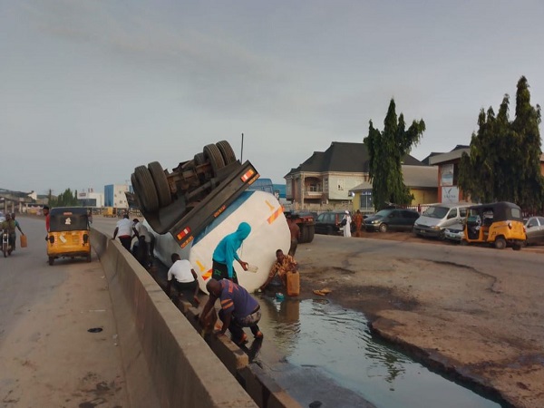 Director of Lagos State Fire and Rescue Service, Margaret Adeseye, said the service received a distress call at 6:50am and on arrival discovered that a 45,000 diesel tanker had upturned and split its contents on the road.