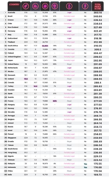 NapLab compiled data from various sources to come up with their list, looking at national s*xually transmitted infection rates, a country’s attitudes toward premarital s*x and the average number of s*x partners, among other criteria.