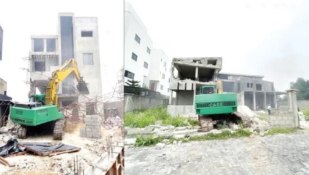 The Lagos State Government demolished an illegal structure on Banana Island, on Saturday, constructed on unauthorised reclaimed land to obstruct drainage paths.